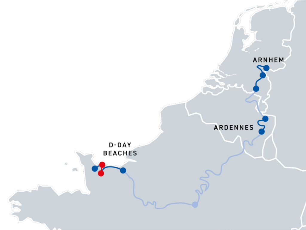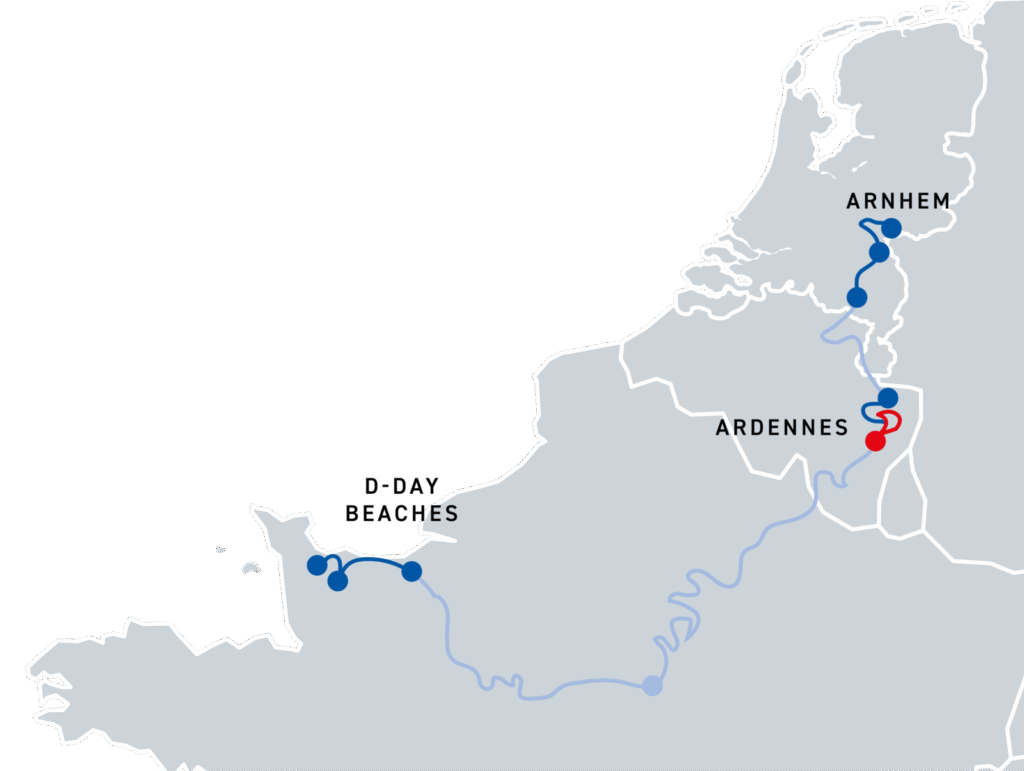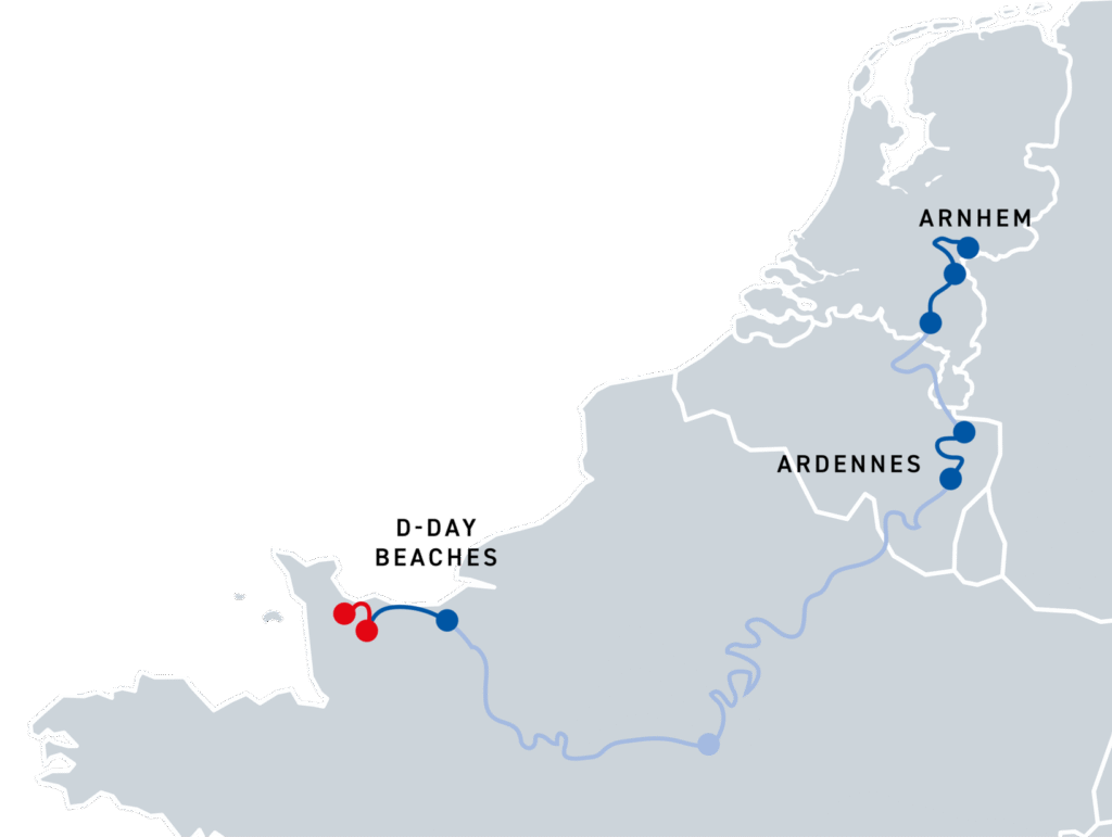 From the church tower with its parachutist, you set off through villages, across Utah Beach, and into the swamps at Carentan. A powerful start on Normandy’s varied terrain.