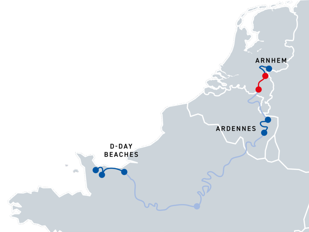 You’re not here for just another run. You’re here for 250 kilometers of raw nature, muscle-burning climbs, coastal stretches, and trails that push you past your limits. The Liberation Trail gives you the ultimate multi-stage experience: from the D-Day beaches and cliffs of Normandy, into the steep forests of the Ardennes, to the wide rivers, winding paths, Hell’s Highway and historic woods of the Netherlands.